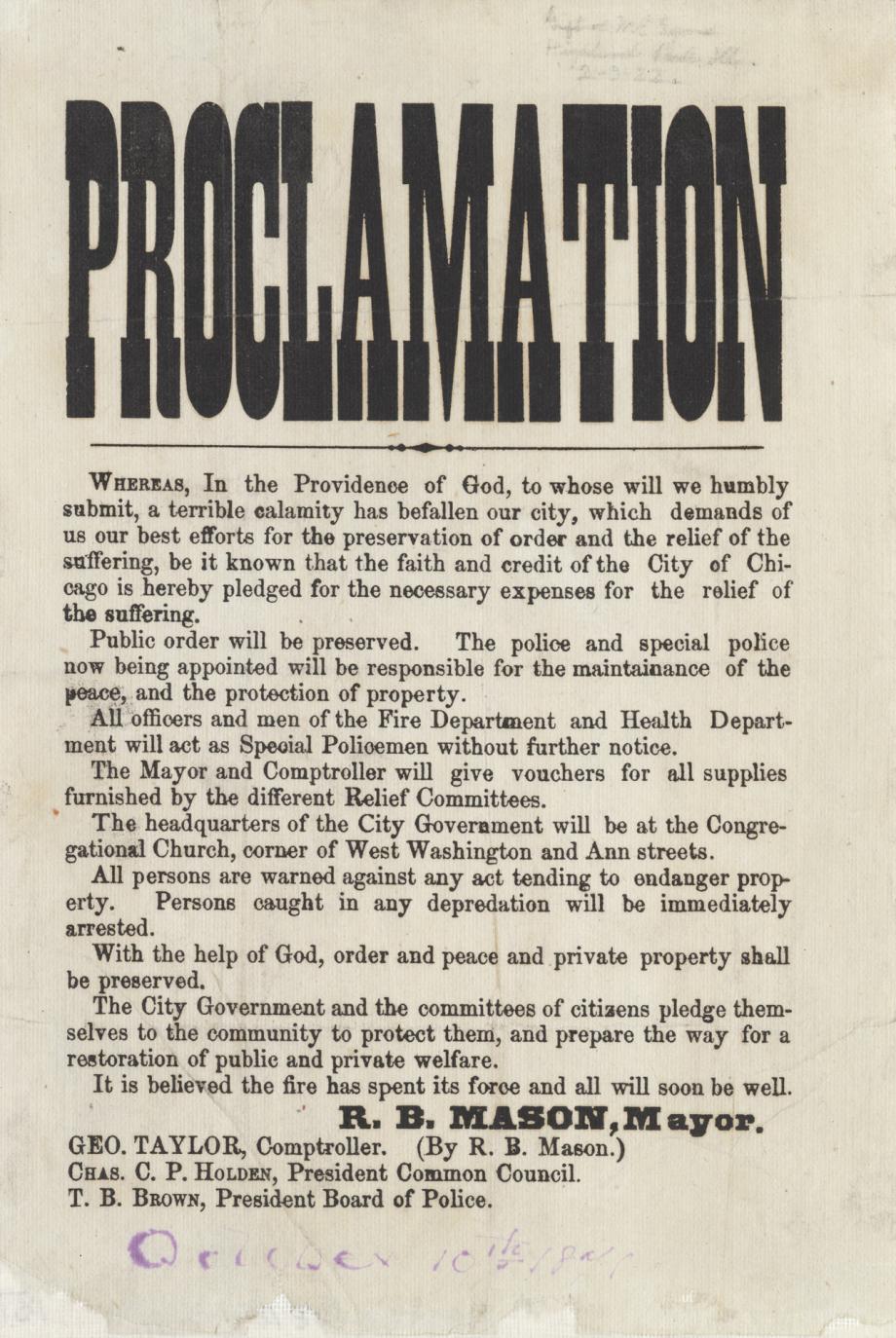 Proclamation by Mayor Roswell B. Mason, October 9, 1871, Broadside (ichi-13962)