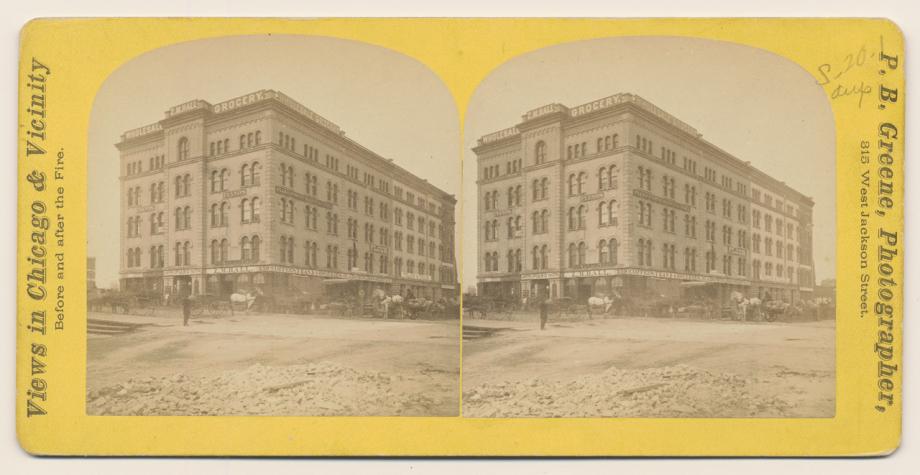 The Lind Block after the Fire; P. B. Greene, Stereograph, 1871 (ichi-64152)
