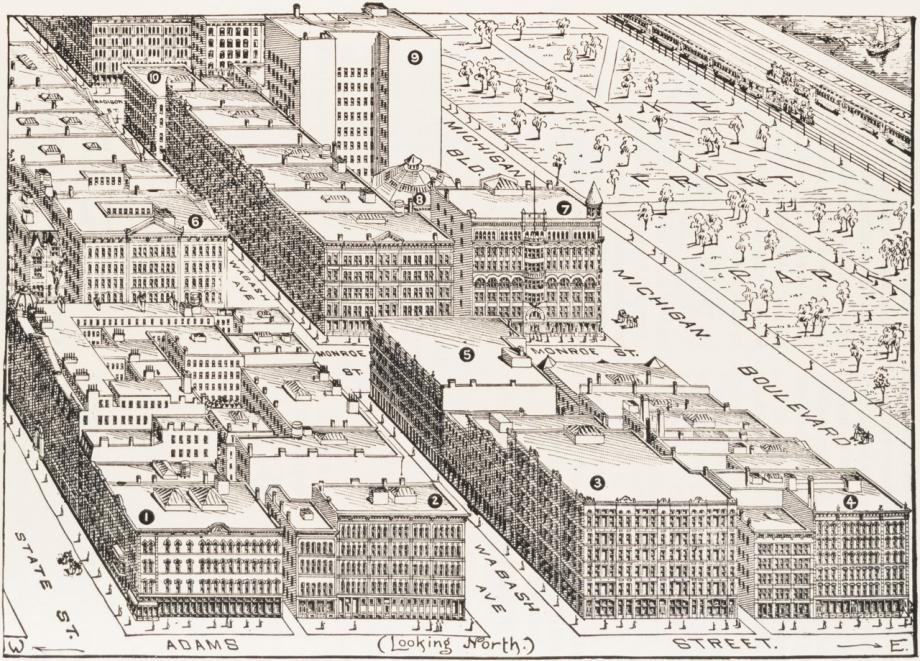 Looking North from East Adams Street; from Rand-McNally, Bird's-Eye Views and Guide to Chicago, 1898